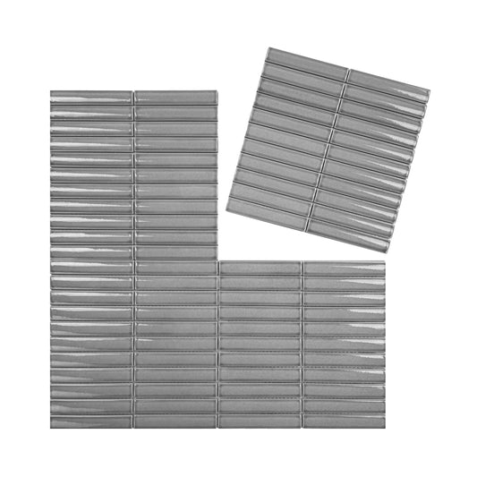 Aurora Strips Series Cloud Grey Glossy Long Strip Glazed Porcelain Mosaic