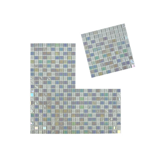 Crystal Cascade Collection Smoke Blue & White Iridescent Mixed Crystal Glass Mosaic