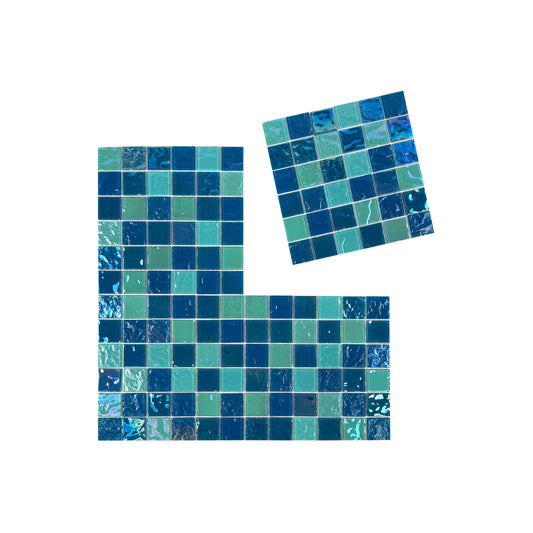 Crystal Cascade Collection Sky Blue & Nile Blue Iridescent Mixed Wave Pattern Crystal Glass Mosaic