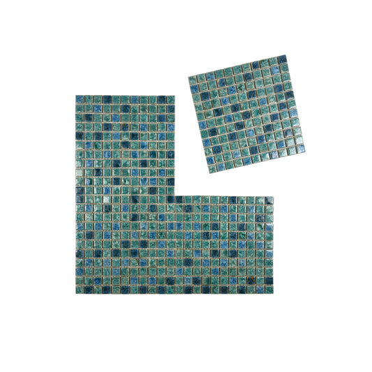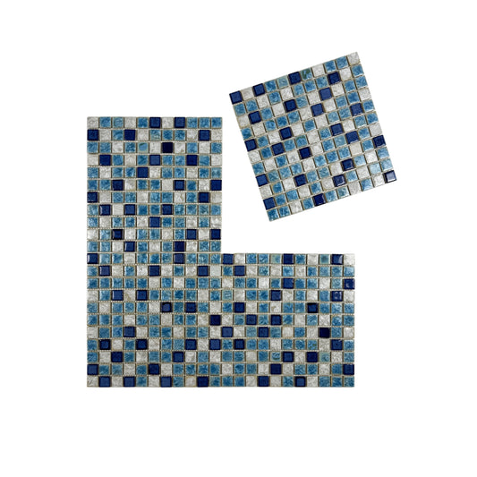 Milan Melody Series Sapphire Blue & Yale Blue Mixed Square Ice Crack Porcelain Mosaic