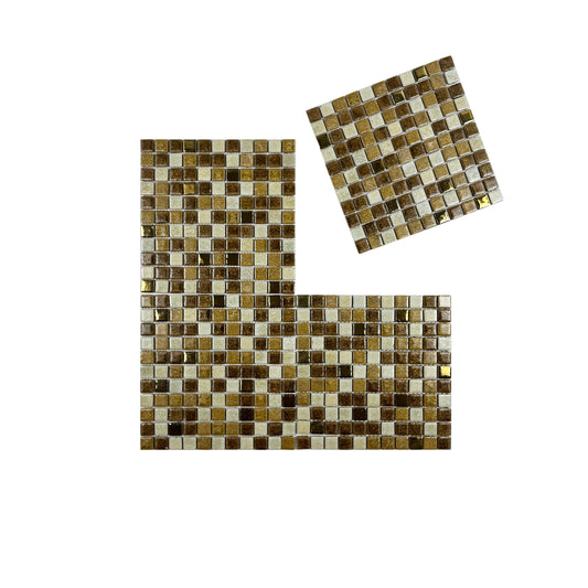 Milan Melody Series Light Beige & Gold Beige & French Beige Mixed Square Ice Crack Porcelain Mosaic