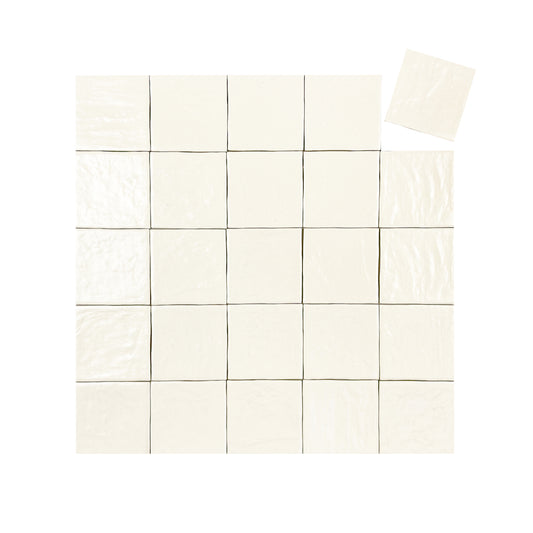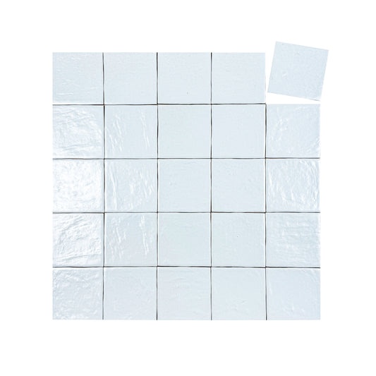 White Semimatte Pearlescent Ceramic Artisanal Tile