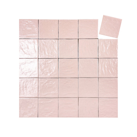 Light Pink Semimatte Pearlescent Ceramic Artisanal Tile