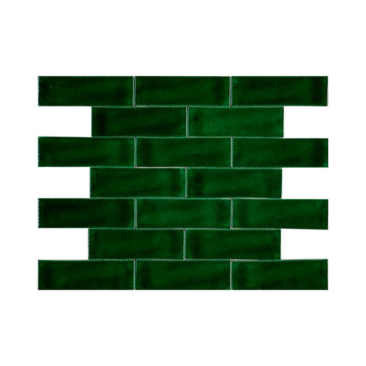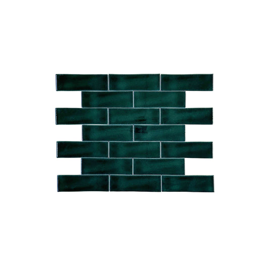 Dark Green Glossy Crackle Porcelain Artisanal Tile