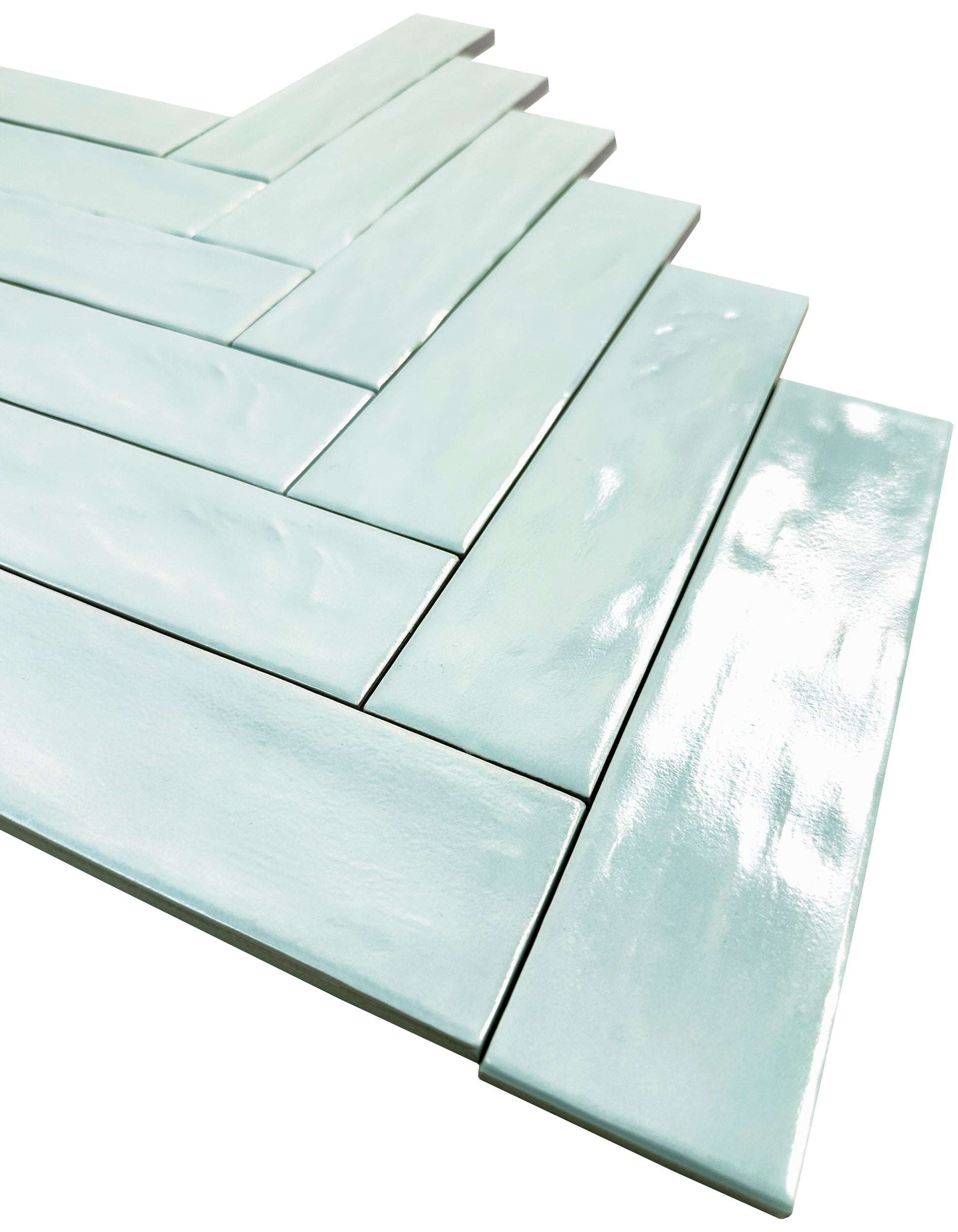 Aqua Blue Semimatte Pearlescent Ceramic Artisanal Tile