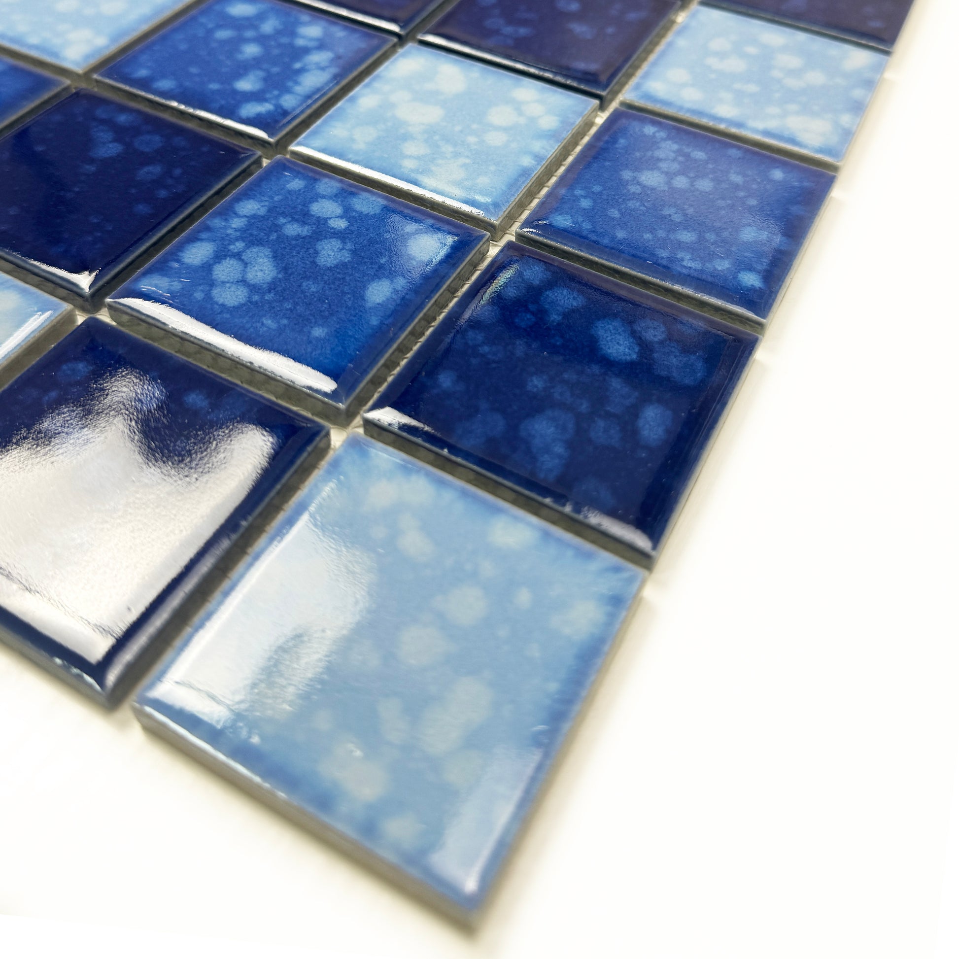 Midnight Splendor Series Sky Blue & Cobalt Blue & Prussian Blue Mixed Iced Flower Texture Crystalline Glazed Porcelain Mosaic